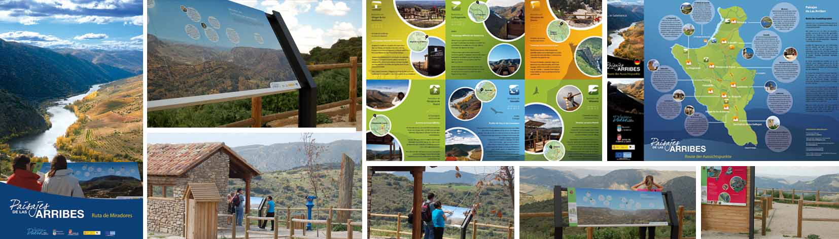 2010-2012. “Paisajes de las Arribes. Ruta de los Miradores”. Diseño y maquetación, de paneles informativos gran formato situados a lo largo del recorrido. Señalización de páramos. Carteles, lonas inauguración, publicidad en prensa, folletos y mapas maquetados en 4 idiomas. Para Diputación de Salamanca. Equipo: Carlos Fortes García, Lucía Lapeña Jiménez.